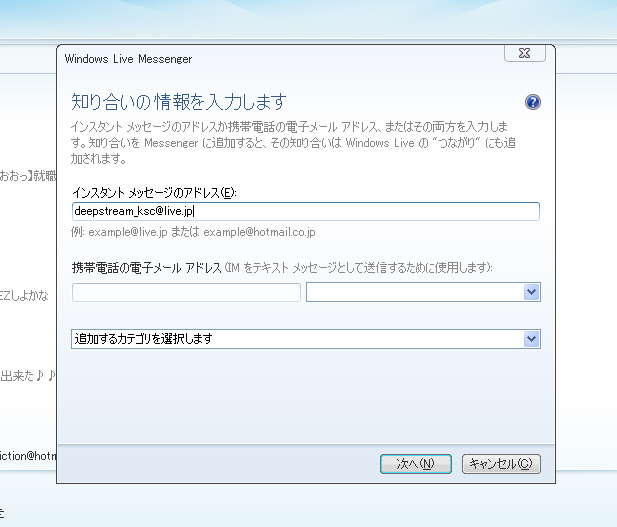(「deepstream_ksc@live.jp」をMSNメッセンジャーでメンバー追加して申請)