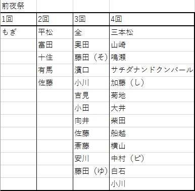 卒業ライブとその前夜祭の飲み会参加者一覧(最新版)です。確認して名前があるかなどチェックお願いします。