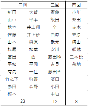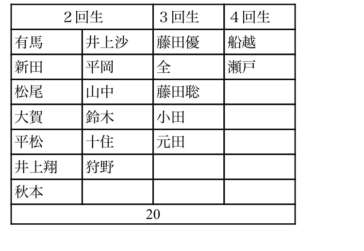 笠原、中村(美)、押川、上田、尹、柴、船越