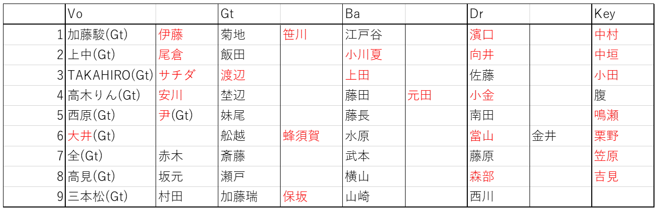 各バンドに寄せられたコメントはバンマスの方に送ってますので、共有よろしくお願いします。