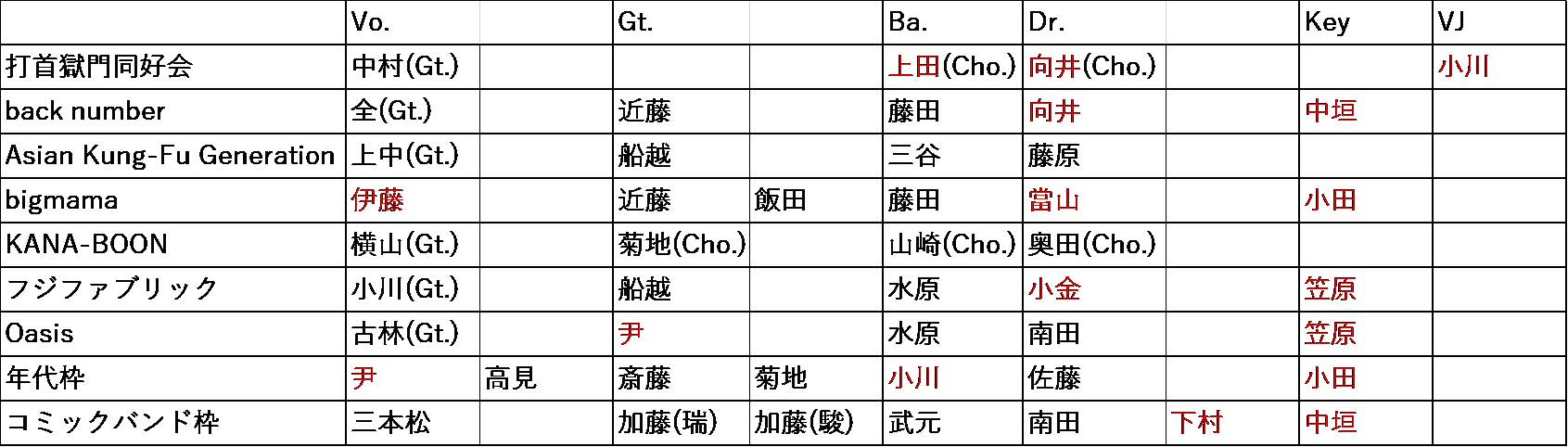 最大6バンド。枠を超えたら音源審査を行う。新勧バンドはサークルの顔になるという認識。シャッフル募集はせず有志のみのライブ。昼ライのみ開催。