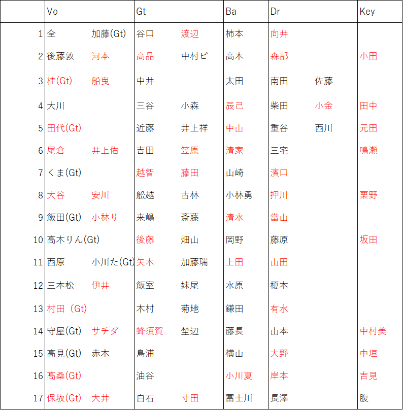 ※メンバー表に記載されていない人はステージに立つことはできません