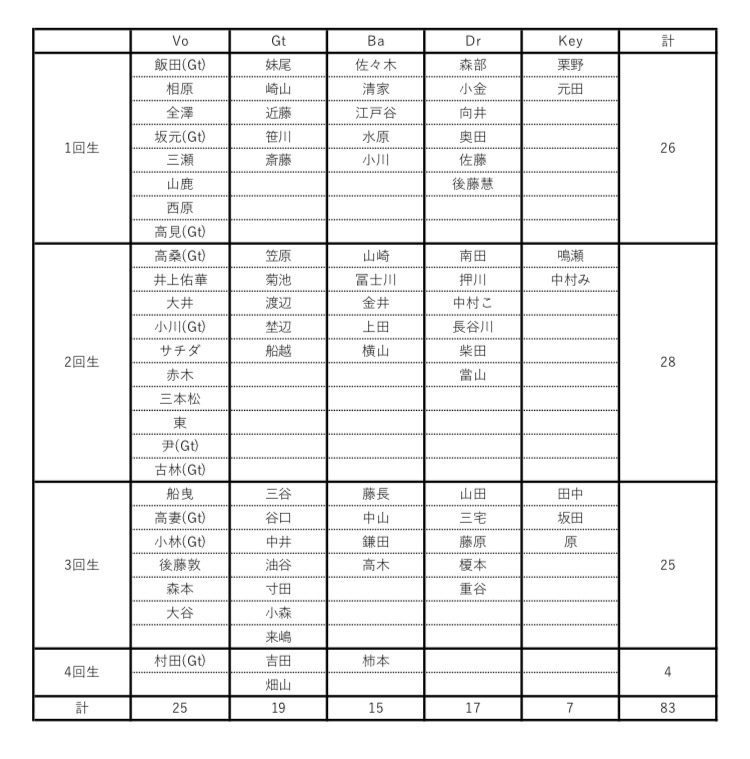 ・リズム隊(Ba.・Dr.)は数が少ないため掛け持ちを可能にしてもよいのでは