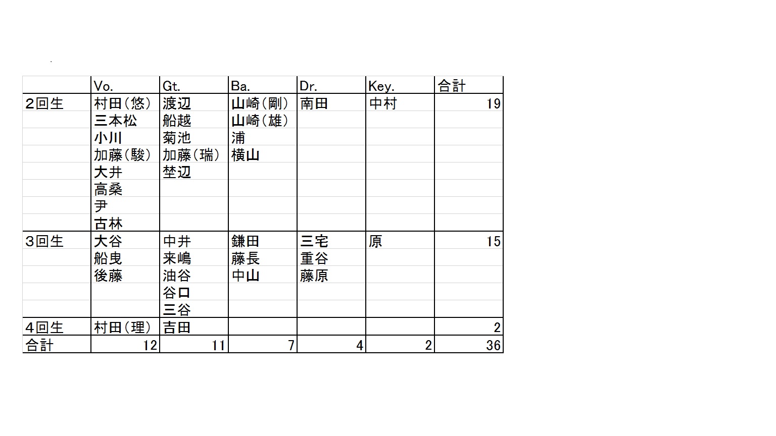 ・春学祭でのバンド組みの反省から無理に3バンド出すことはせず、タイテを調整するなど柔軟に対応する