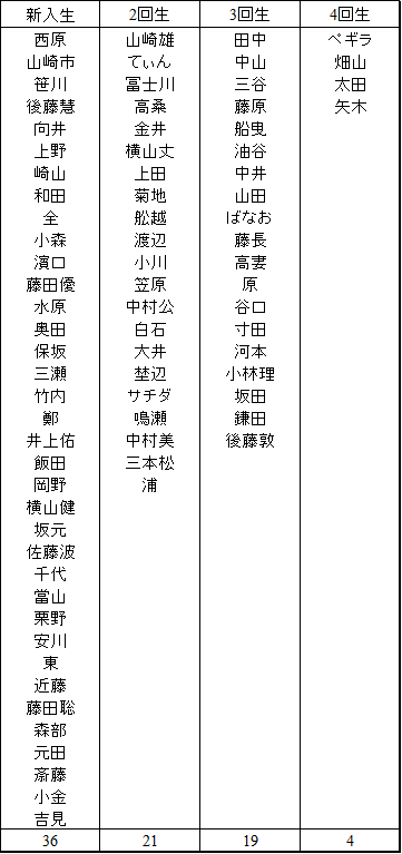 →2回生にとっては来年度フレッシュ付きをする訓練になる
