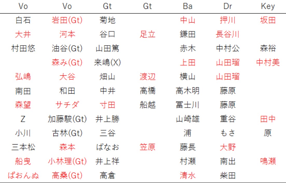 Ø 去年のようにバンドの組みなおしなどは原則行わない