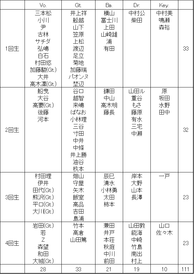 →2回生から上の回はほとんどの人が有志を組んでいる。そのためバンドごとの投票にすると有志のない1回生の投票数が多くなってしまう。