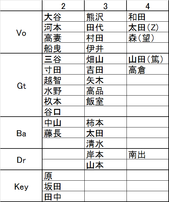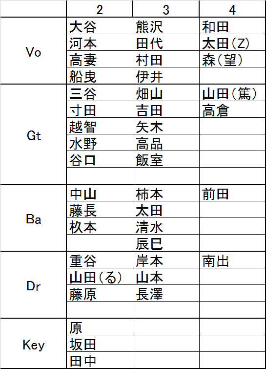 ・メンバーやコピーアーティストで選ばず、音源を最後まできちんと聞いたうえで女子大合同に出演してほしいバンドを選出してください。