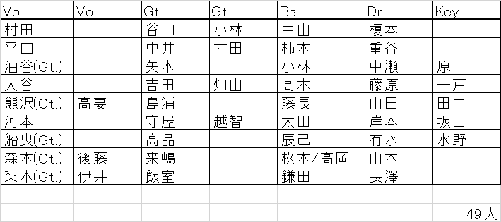 ・掛け持ち基本なし→ドラムは人数不足なので掛け持ち2個までOK