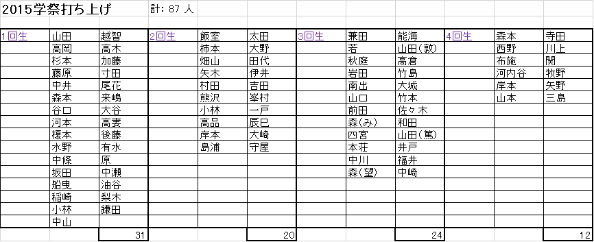 ※シャッフルに出演しなくて打ち上げに参加する方は、直接岸本か矢木に渡して下さい。