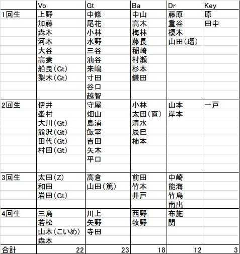 吉田:仕事できる(夏合宿の幹事を通して)、副会長に向いている。曲のコピーを後回しにするタイプ。渉内外には向いていない。技術的にまだ甘い。