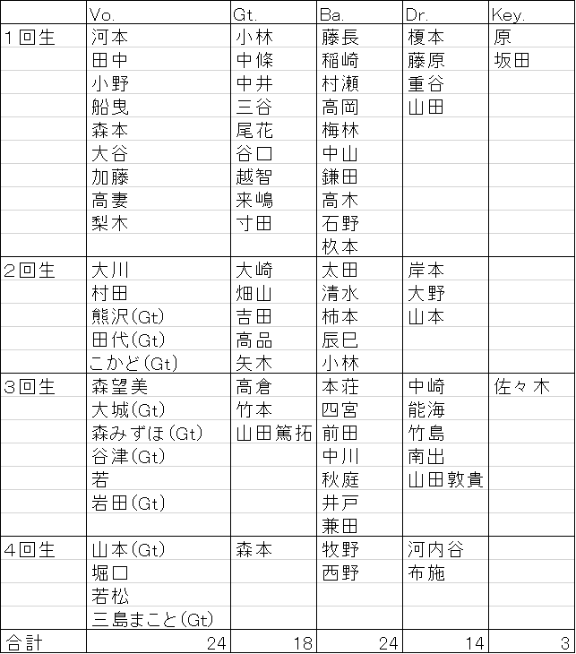 渉外…副会長が兼任、合同ライブを増やしたいため。deep内のライブは渉内が運営し、渉外が合同ライブを運営していく