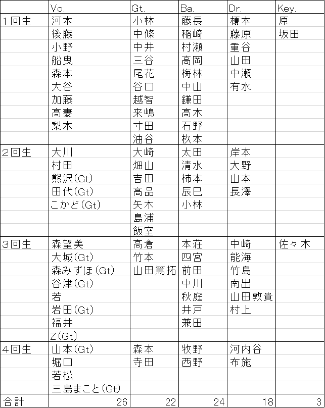 →兼任がなしということで山本がドラムパート長に決定したため山本が立候補取り下げ