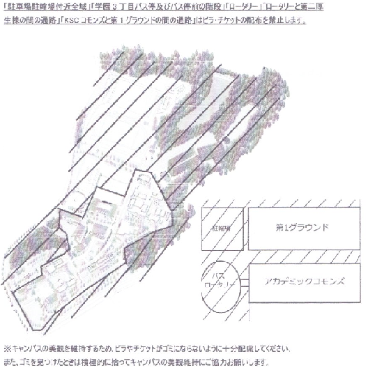 ・ビラの配布について・・・ノンチケットゾーン(下記地図参照)があるのでそこでのビラの配布は禁止されています。