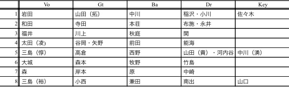 1日目の朝にパート練を行ないます。ドラムは2部屋です。部屋割は当日に発表します。