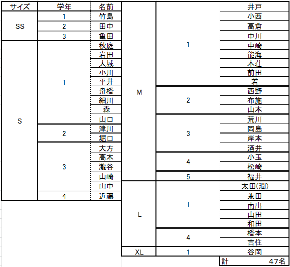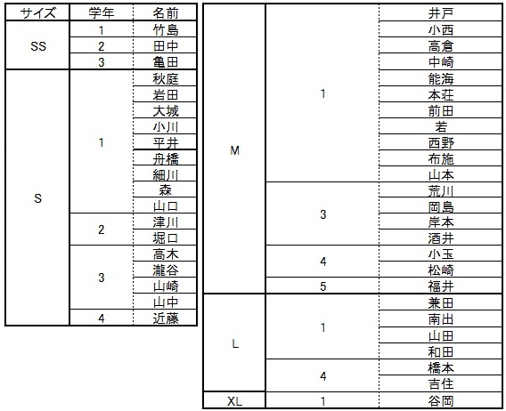 小西 若 本荘 山口 能海 前田 佐々木 兼田 高倉 太田 太田(潤) 中川 森 竹島 永井 秋庭 中崎 角尾 岩田 舟橋 中川(太) 山田 福田
